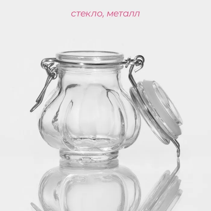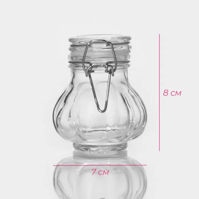 Банка для сыпучих Доляна «Чеснок», 100 мл, 7×8 см, с бугельным замком, стекло, прозрачная — Характеристики