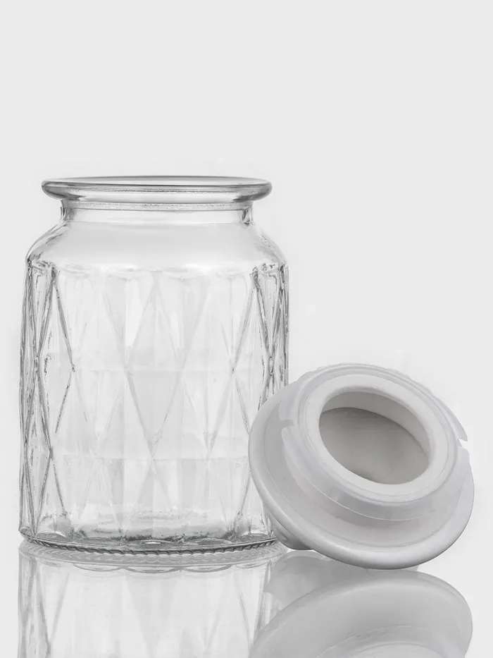- Удобная форма и размер банки позволяют легко хранить и использовать сыпучие продукты, такие как крупы, специи, макароны, сахар, мука и бобовые.