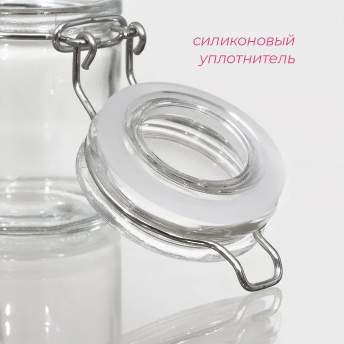 Банка для сыпучих Доляна «Оптима», 50 мл, 6.5×4.5×6 см, с бугельным замком, стекло, прозрачная — Характеристики
