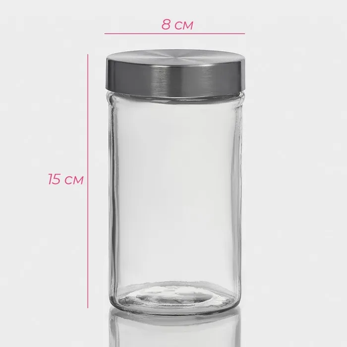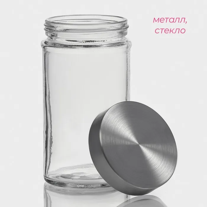 Банка для сыпучих Доляна «Премиум», 550 мл, 15×8 см, с металлической крышкой, стекло, прозрачная — Характеристики