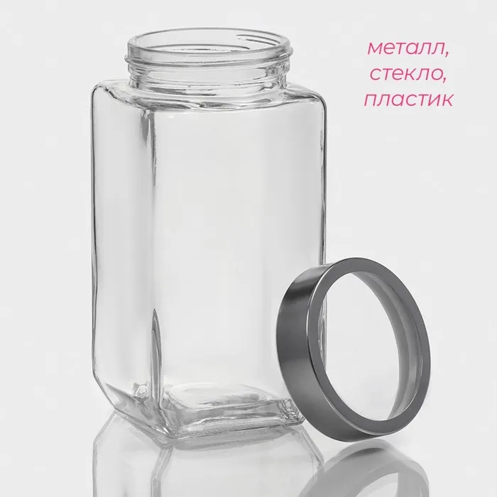 Банка для сыпучих Доляна «Призма», 1 л, 9×18.5 см, с металлической крышкой, стекло, прозрачная — Характеристики