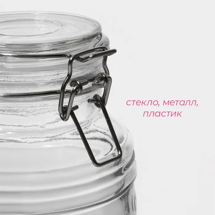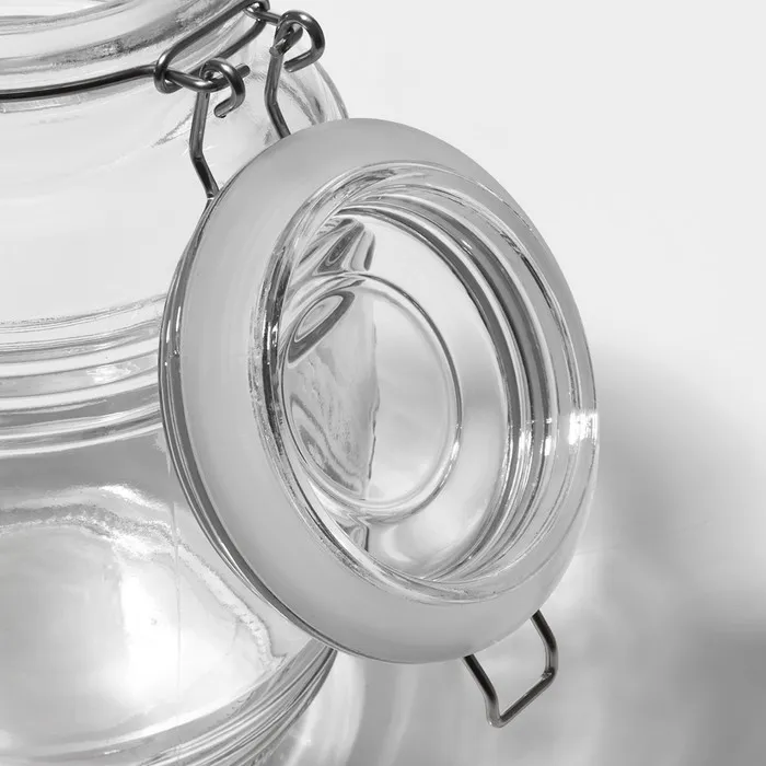 - Герметичность: бугельный замок обеспечивает плотное закрытие банки, сохраняя свежесть продуктов и защищая их от влаги, пыли и насекомых.