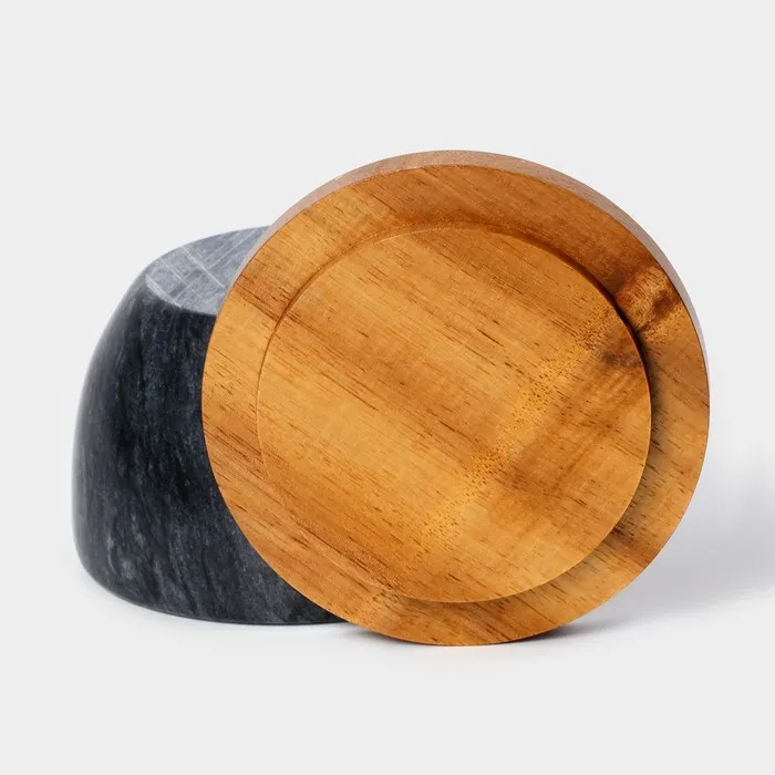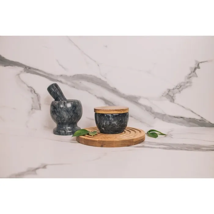 - Стильный дизайн: натуральный мрамор черного цвета и деревянная крышка делают банку “Marte” стильным и элегантным дополнением к вашей кухне.