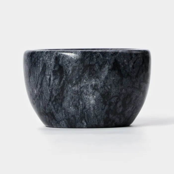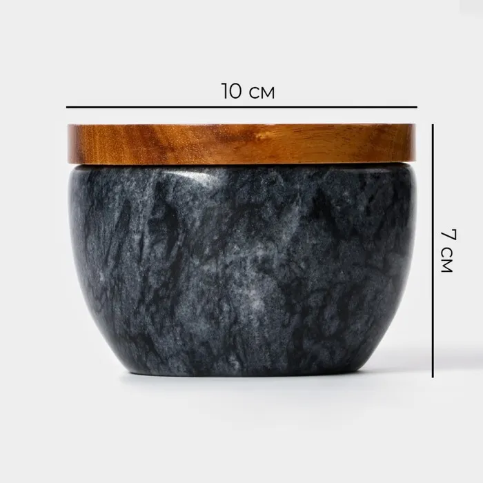 Банка “Marte” изготовлена из натурального мрамора черного цвета и имеет деревянную крышку. Она имеет компактный размер и удобна в использовании.