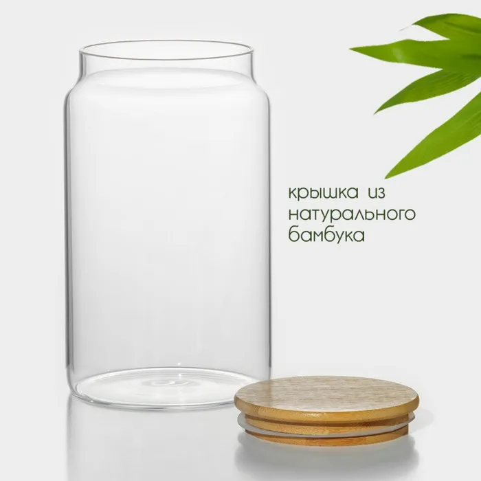 Банка для сыпучих продуктов BellaTenero «Эко», 2 л, 12×20 см, с бамбуковой крышкой, стекло, прозрачная — Характеристики