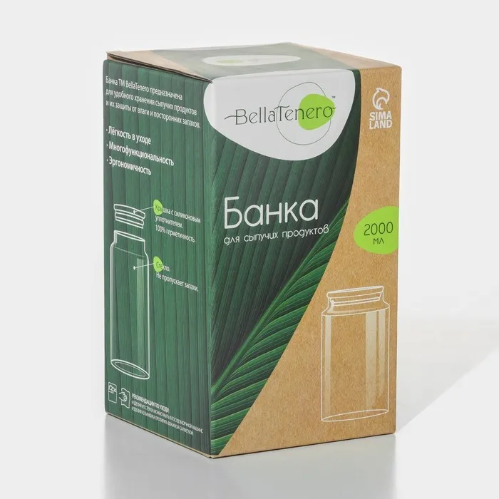 Банка для сыпучих продуктов BellaTenero «Эко» изготовлена из стекла. Крышка с силиконовым уплотнителем защитит продукты от влаги и посторонних запахов.