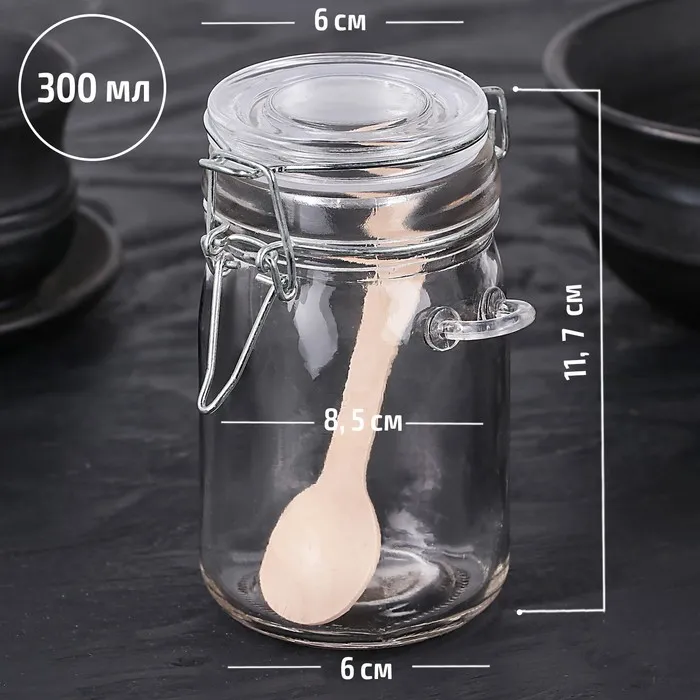 Банка для сыпучих продуктов с бугельным замком и ложкой Доляна «Оптима», 300 мл, 8.5×6.5×11 см, стекло — Характеристики