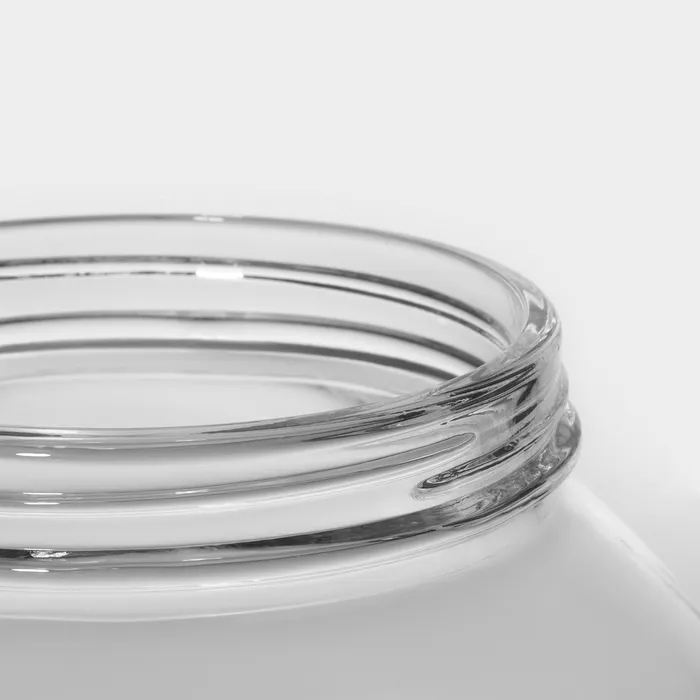 Банка для сыпучих продуктов изготовлена из стекла. Имеет плотно закрывающуюся крышку, которая защищает продукты от влаги и посторонних запахов. В ёмкости удобно хранить крупы, специи, макаронные изделия, сахар, муку и бобовые.
