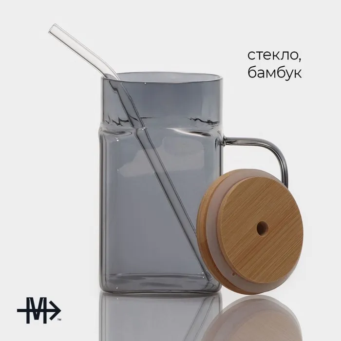 Банка Magistro «Эко», 620 мл, ручка, трубочка, с бамбуковой крышкой, стекло, прозрачная, чёрная — Характеристики