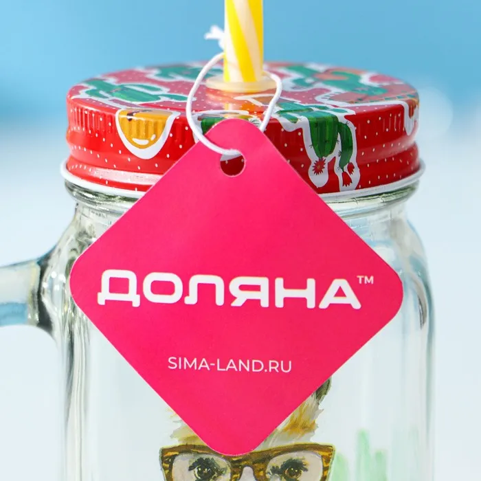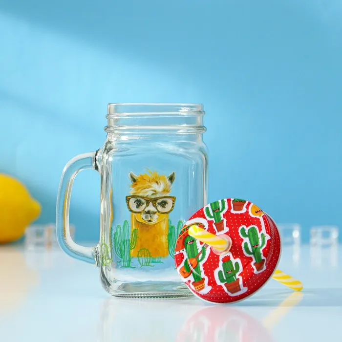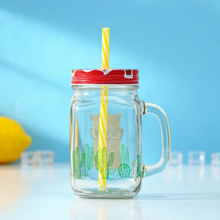 Банка с крышкой и трубочкой Доляна «Лама», 450 мл, 10×7.5×13 см, стекло, прозрачная, разноцветная — Характеристики