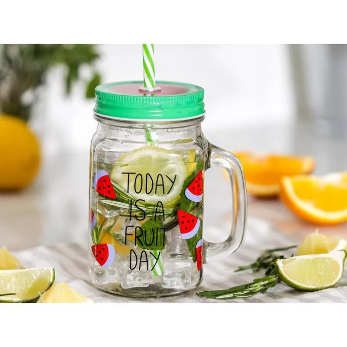 Банка с ручкой оснащена удобной ручкой и крышкой, она завоевала уважение тех, кто обожает здоровое питание. В оригинальной кружке можно даже готовить полезные завтраки, например, гранолу с йогуртом. Часто используется в барах для подачи коктейлей и лимонадов.