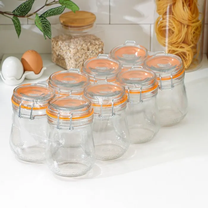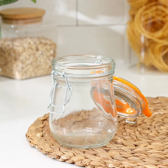 Баночка стеклянная с бугельным замком очень стильно смотрится на кухне, в интерьере и даже за столом. Толстое прозрачное стекло банки и крышки надолго сохраняет свежесть и качество продуктов, не впитывает посторонние вкусы и запахи. Прочный бугельный замок плотно прижимает крышку к горлышку банки, а уплотняющая клипса обеспечивает дополнительную герметичность. Стеклянная банка с бугельным замком отлично подходит для подачи десертов, мороженного, кремов, соусов. Банка с замком подходит для хранения мелочей, фурнитуры, бижутерии и пр. Ёмкость компактная, удобна для транспортировки, легко моется, прослужит долгое время. Отлично подойдет в качестве подарка.
