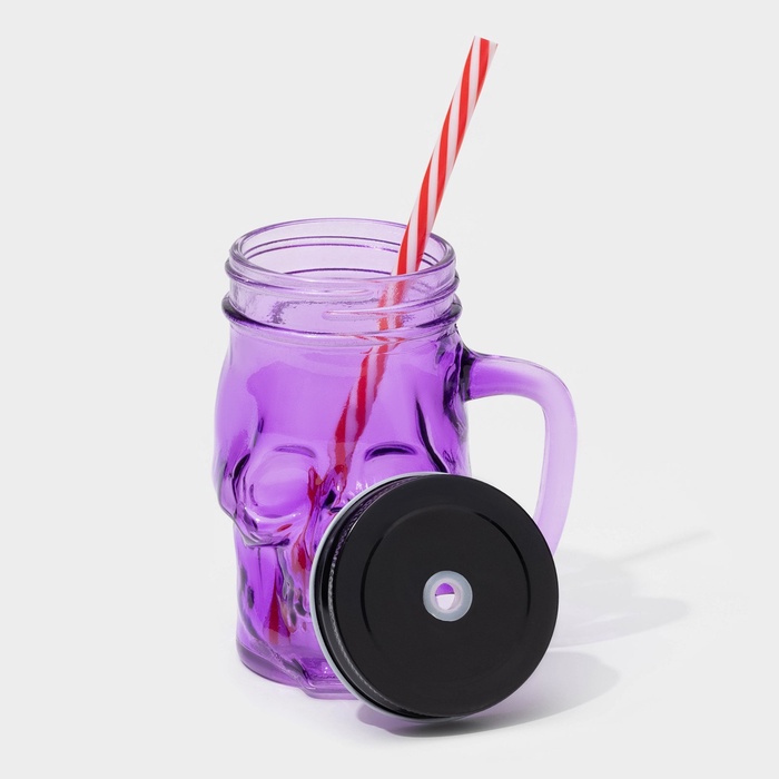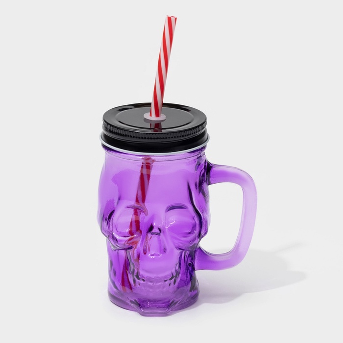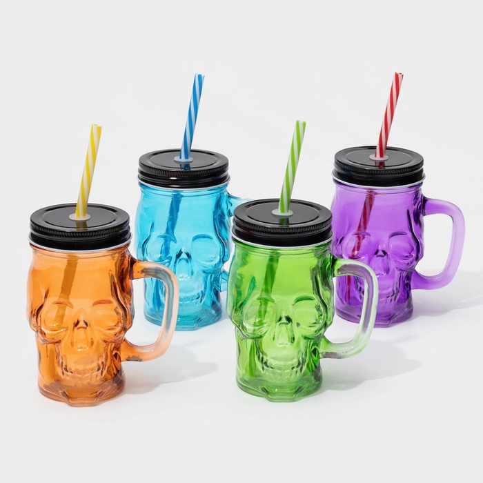 Банка стеклянная с крышкой и трубочкой «Череп. Хэллоуин», 400 мл, 11×8,5×13 см, цвет МИКС — Характеристики