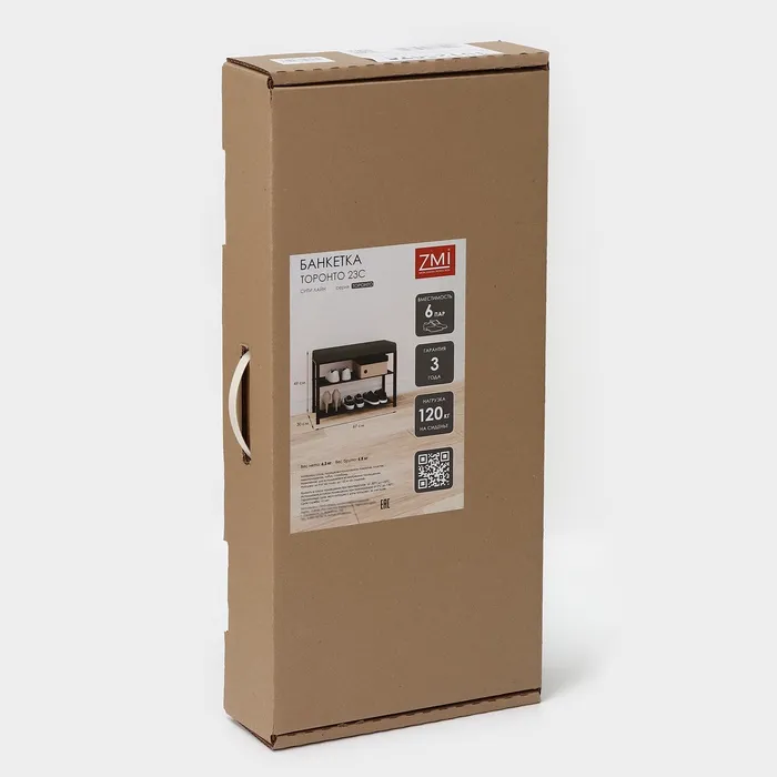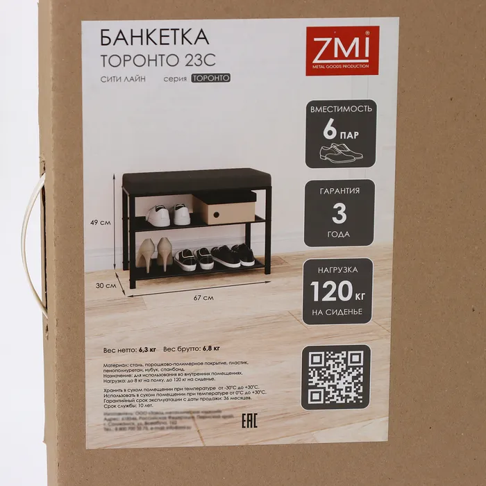 Банкетка «Торонто 23S», 67×30×49 см, цвет каркаса графит, цвет сиденья серый — Характеристики