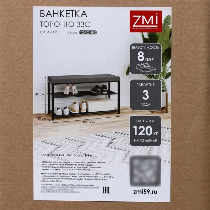 Банкетка «Торонто 33C», 88.5×30×49 см, цвет каркаса белый, цвет сиденья бежевый — Характеристики