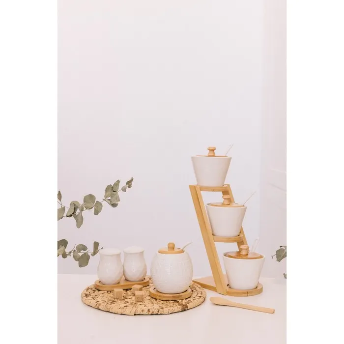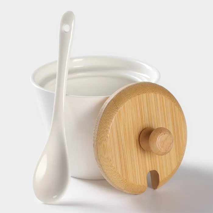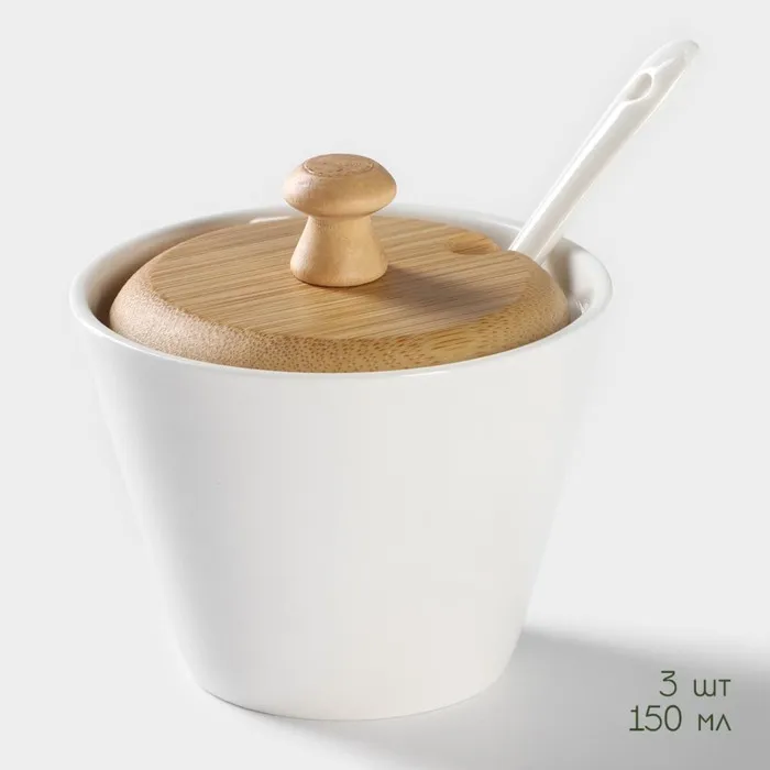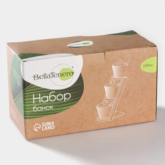 Банки для сыпучих BellaTenero, 150 мл, с ложками, на бамбуковой подставке, фарфор, белые — Характеристики
