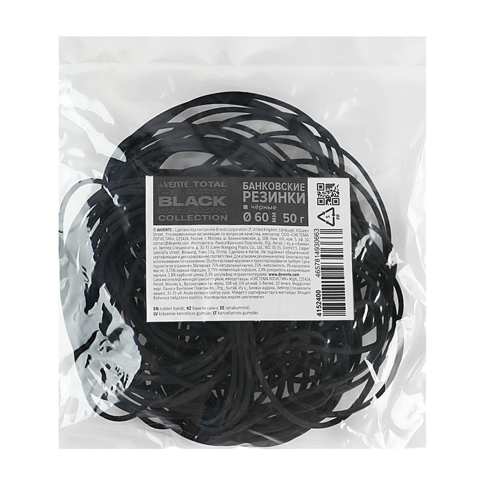 Банковская резинка 60 мм 50 г deVENTE TOTAL BLACK, черные 4152400 — Характеристики