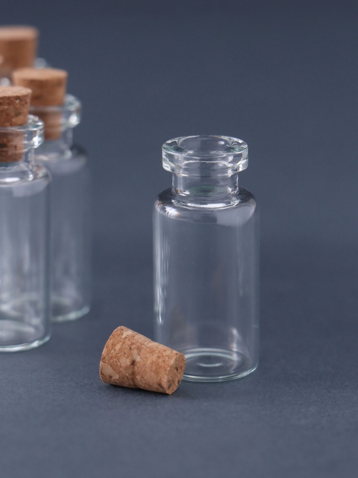 Баночка для хранения декора «Бутылочка с пробкой», стекло, прозрачная, 3 мл, набор 12 шт., 3.5×1.6×1.6 см — Характеристики