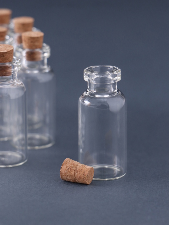 Баночка для хранения декора «Бутылочка с пробкой», стекло, прозрачная 5 мл, набор 12 шт., 4×1.8×1.8 см — Характеристики