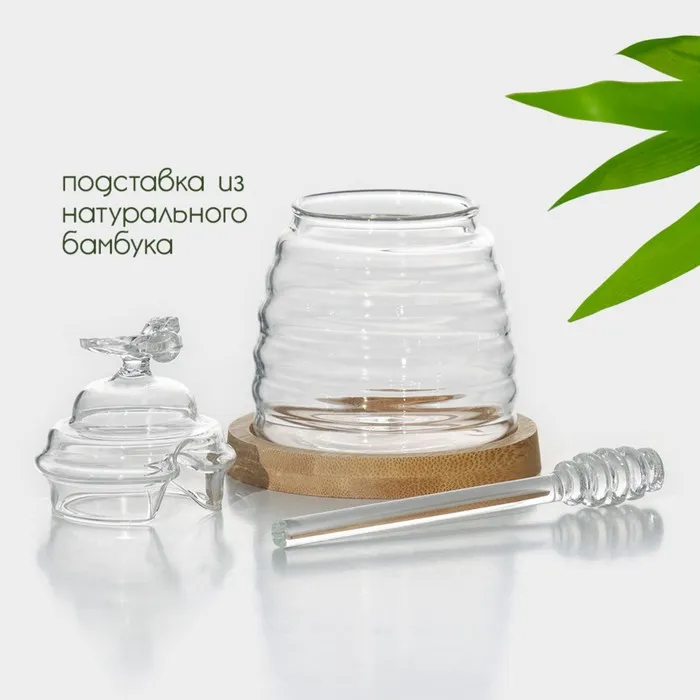 Баночка для мёда и варенья BellaTenero «Эко. Пчёлка», 300 мл, 10×12,5 см, с ложкой, стекло — Характеристики