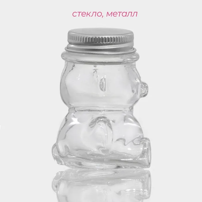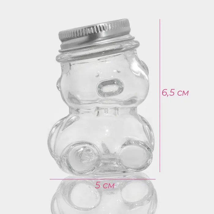 Баночка для мёда и варенья Доляна «Медвежонок», 40 мл, 5×6.5 см, стекло, прозрачная — Характеристики
