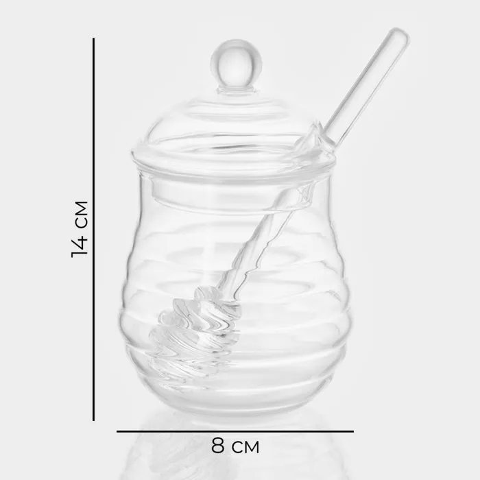 Баночка для мёда и варенья Magistro «Винни», 300 мл, 8×14 см, стекло, прозрачная — Характеристики