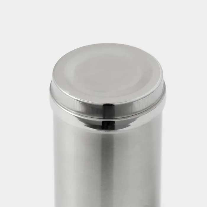 Баночка имеет стильный серебристый цвет и простую цилиндрическую форму, которая отлично впишется в любой интерьер. Благодаря прочной нержавеющей стали, баночка не впитывает запахи и легко моется.
