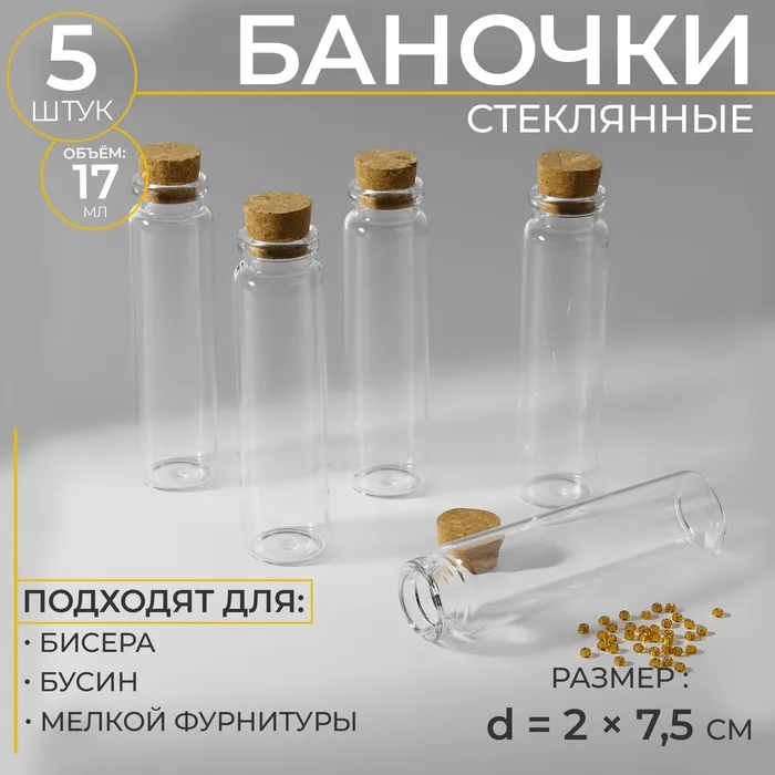 Баночки для хранения мелочей, d=2×7.5 см, 5 шт. — Характеристики