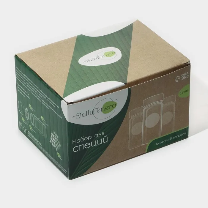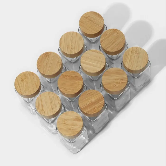 Баночки для специй BellaTenero «Эко», 120 мл, 4.3×11 см, набор 12 шт., с бамбуковой крышкой, стекло, прозрачные — Характеристики