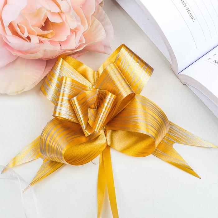 Применение: Для того чтобы собрать бант, надо потянуть за две ленточки, находящиеся между широкими лентами, удерживая широкие ленты в месте спайки.