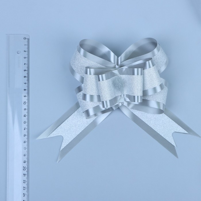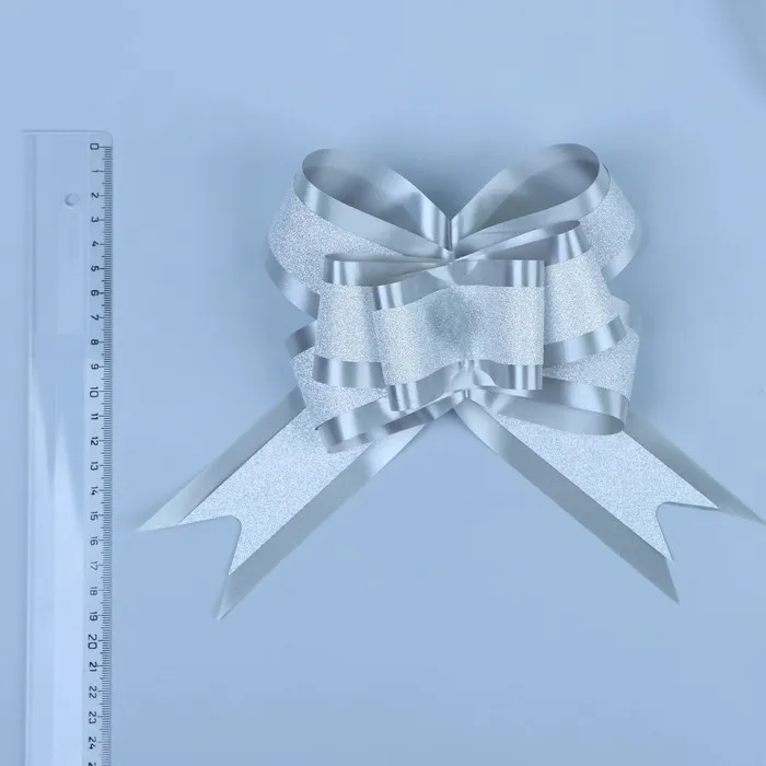 Применение: Для того чтобы собрать бант, надо потянуть за две ленточки, находящиеся между широкими лентами, удерживая широкие ленты в месте спайки.