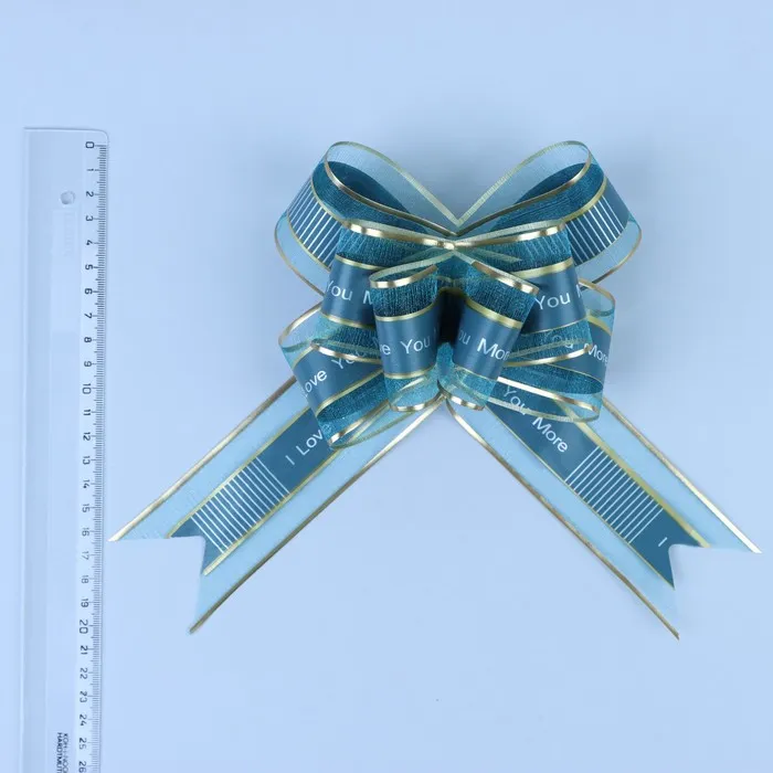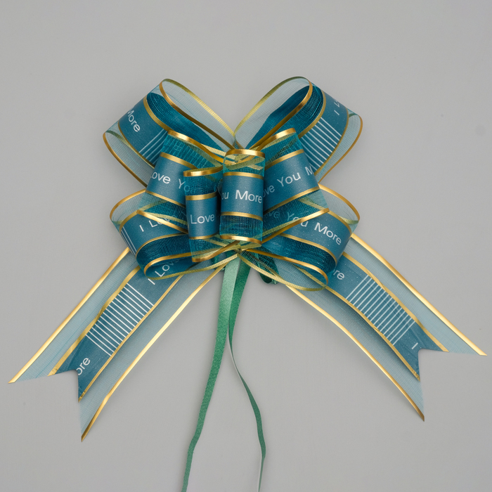 Применение: Для того чтобы собрать бант, надо потянуть за две ленточки, находящиеся между широкими лентами, удерживая широкие ленты в месте спайки.