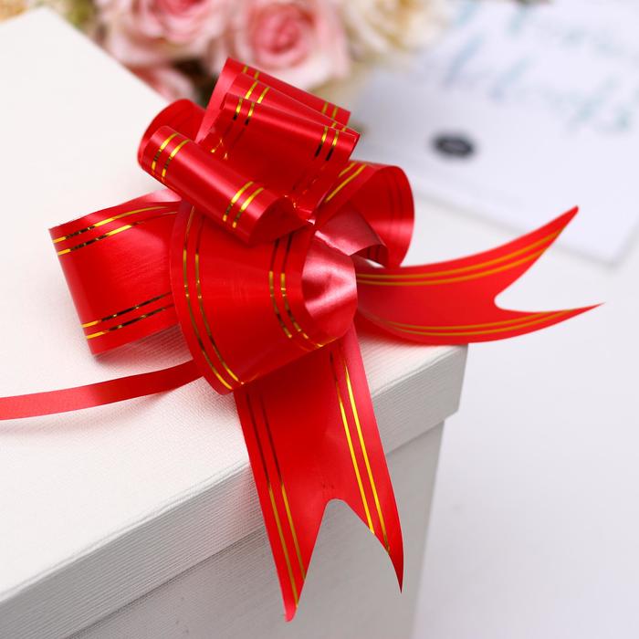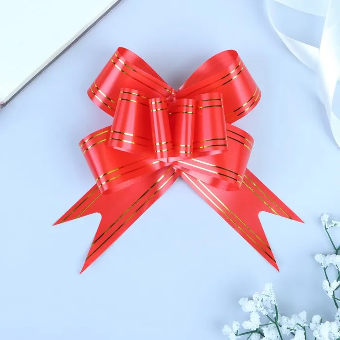 Применение: Для того чтобы собрать бант, надо потянуть за две ленточки, находящиеся между широкими лентами, удерживая широкие ленты в месте спайки.
