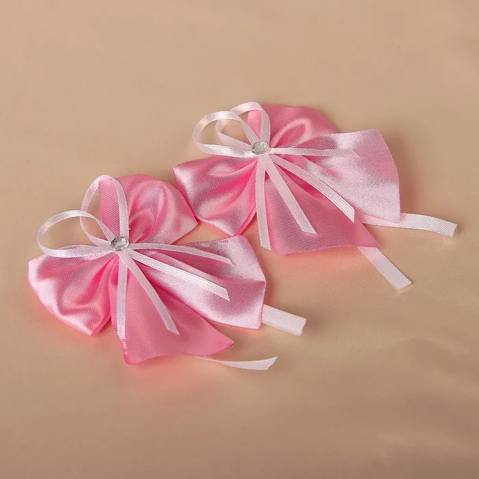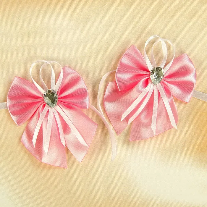 Бант-бабочка свадебный для декора, атласный, 2 шт., розовый