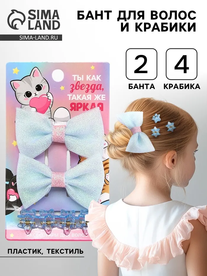 Бант для волос и крабики «Яркая звезда» 2 шт. — Характеристики