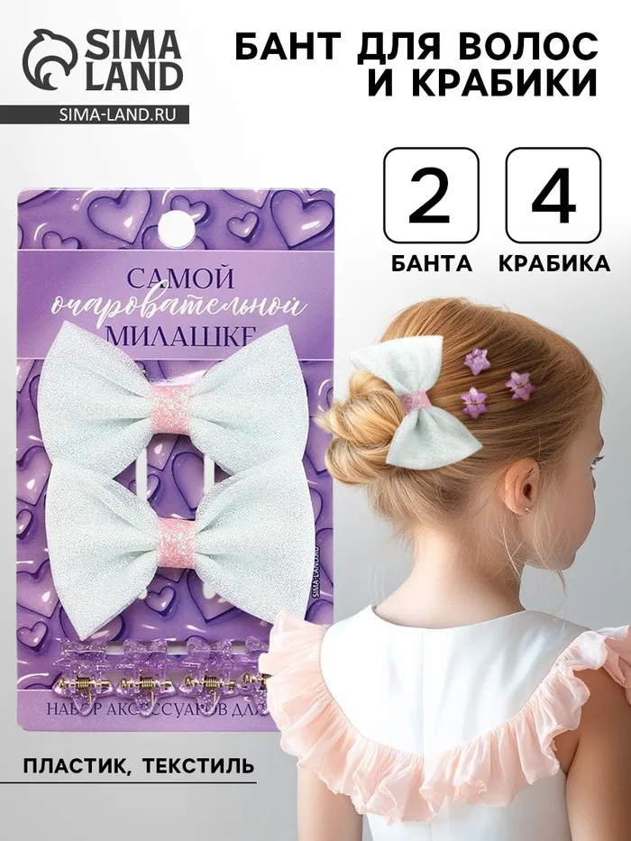 Бант для волос и крабики «Милашке» 2 шт. — Характеристики