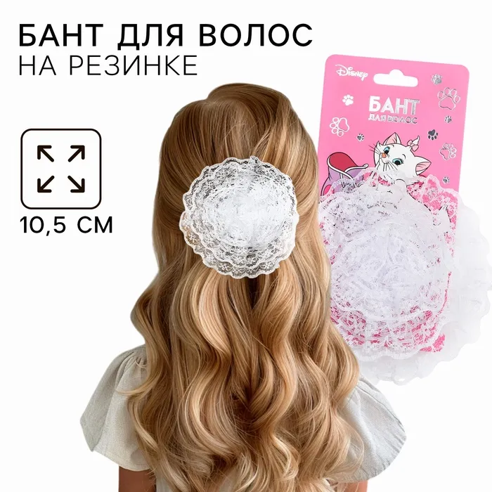 Бант для волос на резинке школьный, белый, 10.5 см, Кошечка Мари — Характеристики