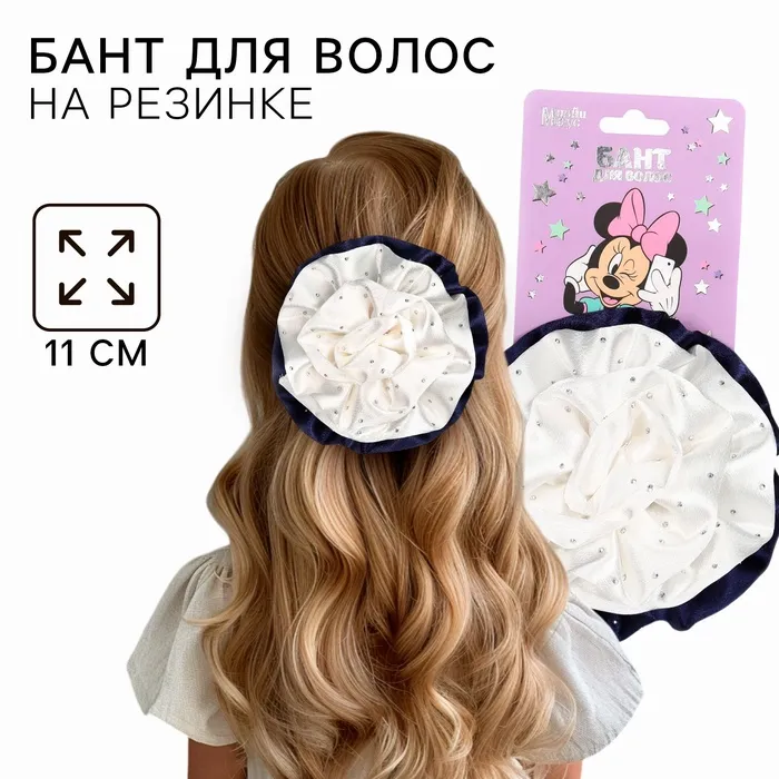 Бант для волос на резинке школьный, белый с синим, 11 см, Минни Маус — Характеристики