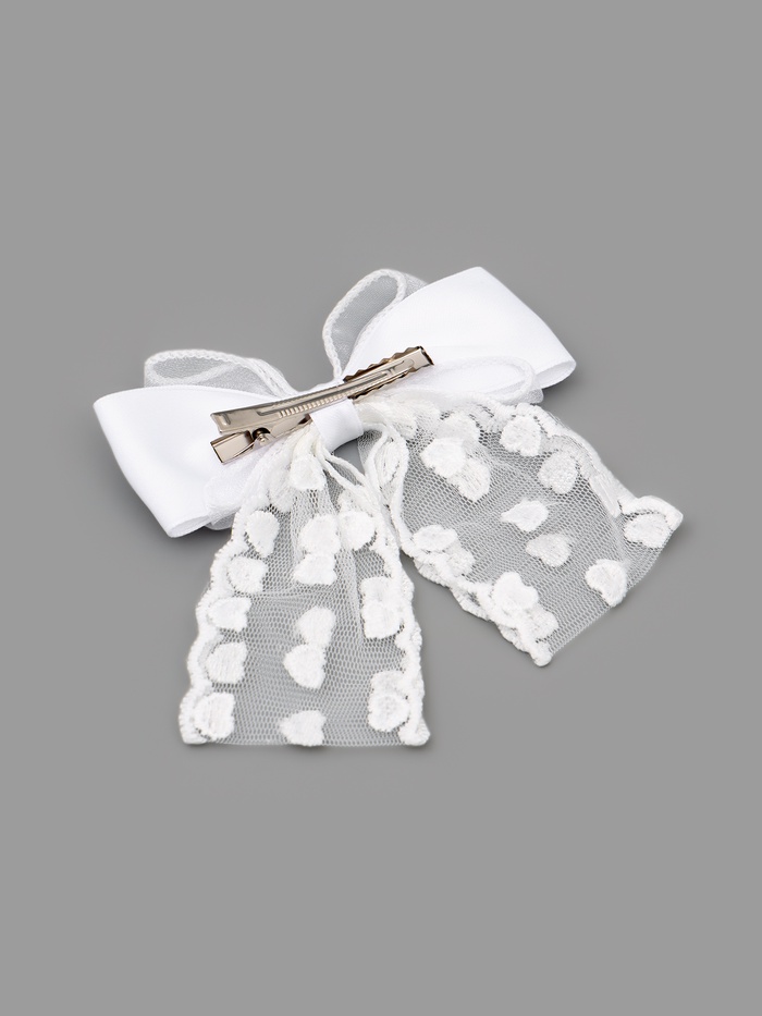 Бант для волос на заколке с лентами «Сердечки» — белый, из коллекции «Принцессы Дисней» — трогательный, праздничный и наполненный теплом! Нежный белый многослойный бант украшен тонкими лентами, переплетёнными в изящный бант. Надёжная заколка бережно фиксирует пряди без заломов. Идеален для утренников, фотосессий, дней рождения или как подарок. Пусть каждая причёска напоминает: самая большая сила на свете — это любовь, доброта и вера в чудо!