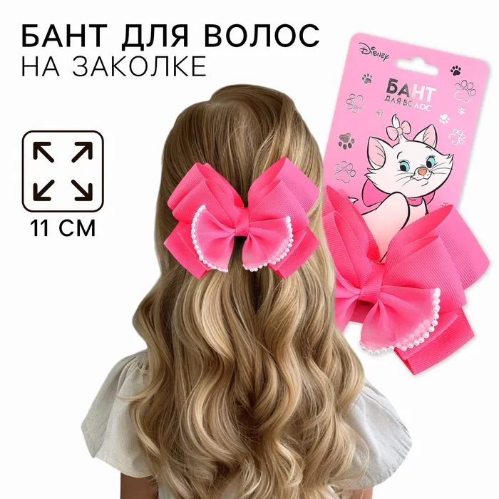 Бант для волос на заколке школьный, 11 см, Кошечка Мари — Характеристики