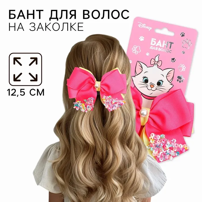 Бант для волос на заколке школьный, 12.5 см, Кошечка Мари — Характеристики