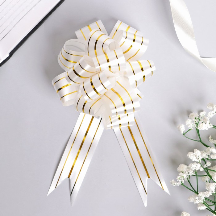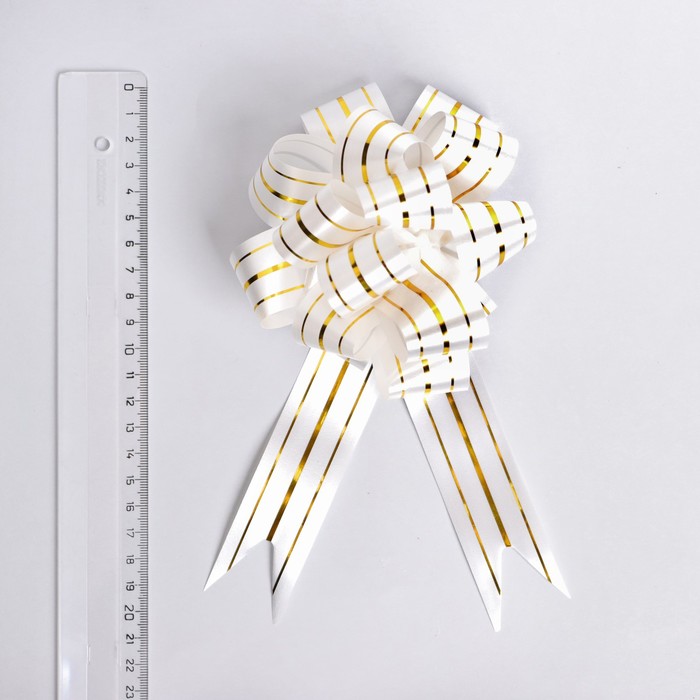 Бант-шар №3 три золотых полосы, белый