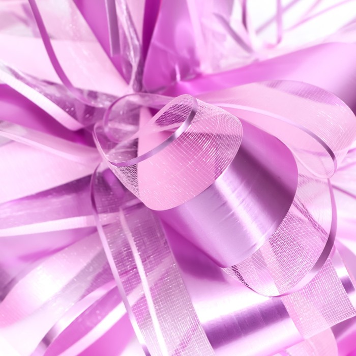 Для того чтобы собрать бант, надо потянуть за две ленточки, находящиеся между широкими лентами, удерживая широкие ленты в месте спайки. Бант собирается за несколько секунд.