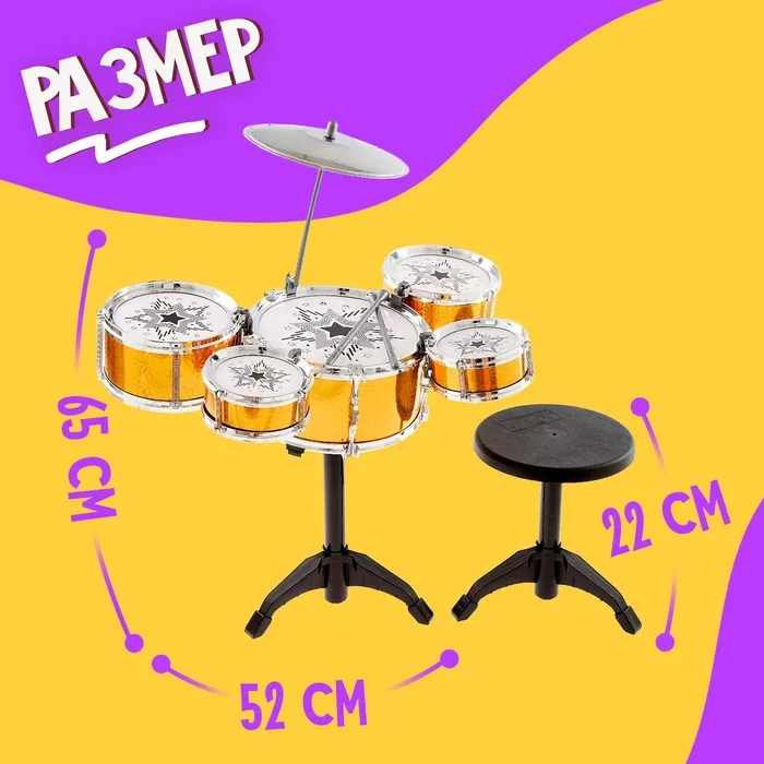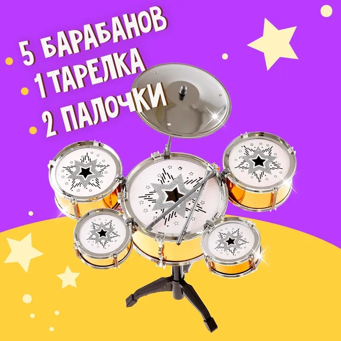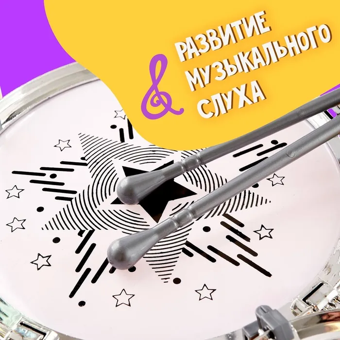 Барабанная установка поможет развить музыкальный слух, чувство ритма и мелкую моторику рук.