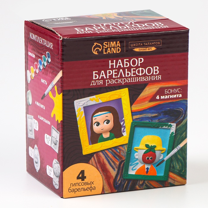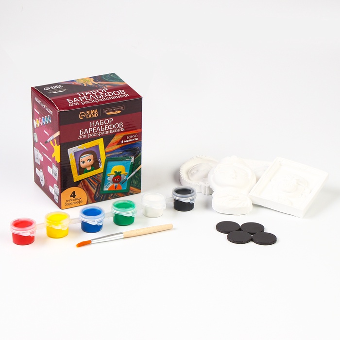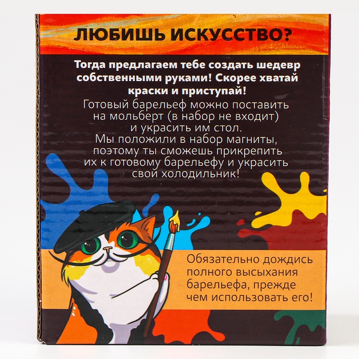 Готовы барельеф можно поставить на мольберт (в набор не входит) и украсить им стол. Мы положили в набор магниты поэтому ты сможешь прикрепить их готовому рельефу и украсить свой холодильник!