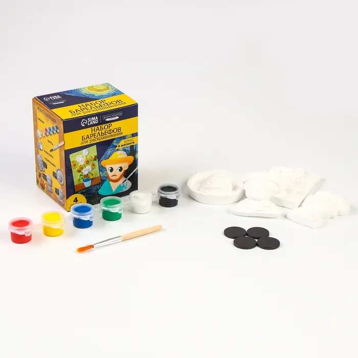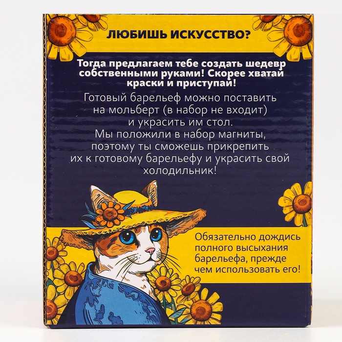 Готовы барельеф можно поставить на мольберт (в набор не входит) и украсить им стол. Мы положили в набор магниты поэтому ты сможешь прикрепить их готовому рельефу и украсить свой холодильник!
