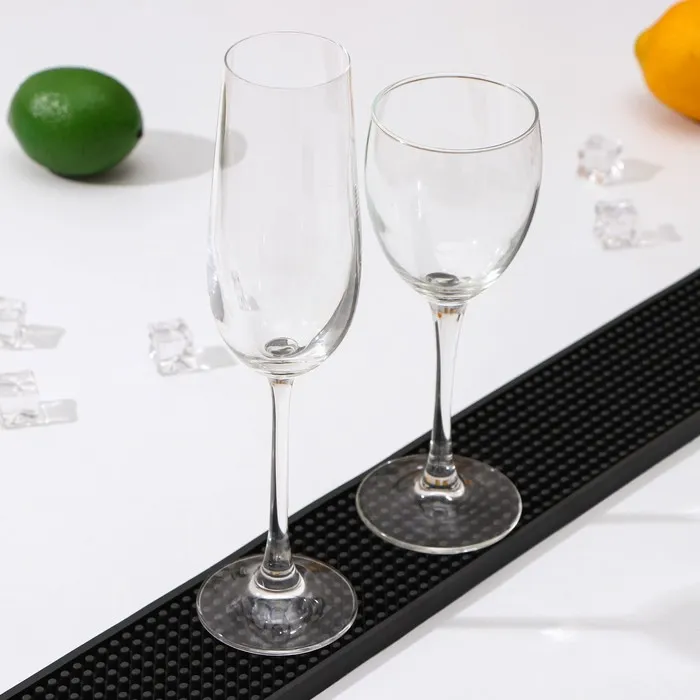 Барный коврик предназначен для поддержания чистоты и порядка на рабочей поверхности. Он предотвращает разливы и скольжение посуды, что особенно важно в барной среде. Коврик легко чистится, однако его нельзя мыть в посудомоечной машине, что следует учитывать при выборе способа ухода за ним.