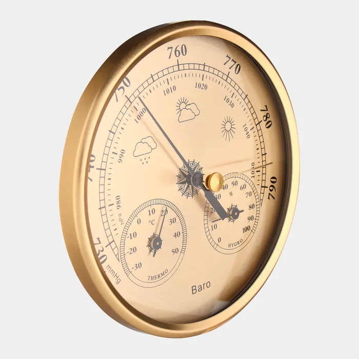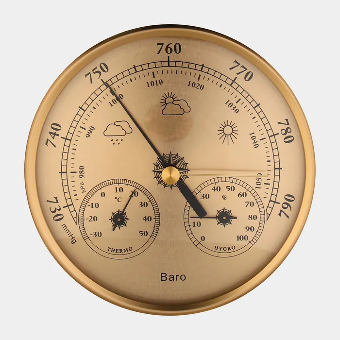 Барометр механический, метеостанция, настенный, золотая рамка, d=13 см — Характеристики