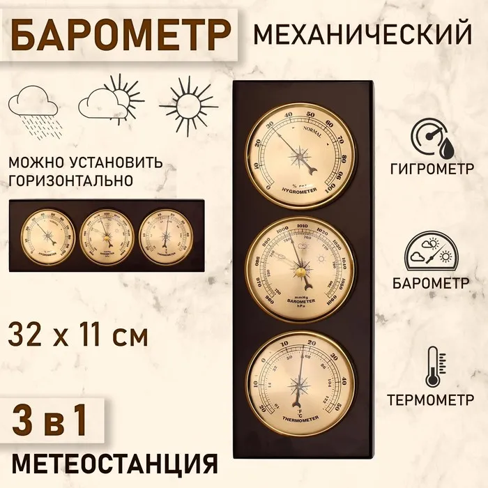 Барометр механический, с метеостанцией, 32×11×3.5 см — Характеристики