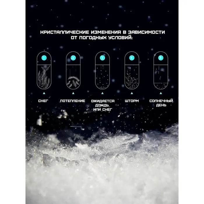 Считается, что барометр определяет погоду следующим образом: колба герметически запаяна, но, тем не менее, в ней постоянно происходит рождение и исчезновение кристаллов. В зависимости от грядущих изменений погоды в жидкости образуются кристаллы различной формы.